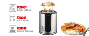 - 2-Slot Design: Toasts two slices of bread simultaneously, ideal for busy mornings or small households.