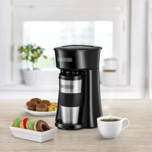 Brew your favorite coffee directly into a travel mug with the Black & Decker DCT10-B5 Coffee Machine—your perfect companion for on-the-go mornings. Compact, efficient, and designed for solo use, this personal coffee maker makes fresh drip coffee in minutes and serves it straight into a stainless steel travel mug you can take with you. Ideal for busy professionals, students, or anyone who wants great coffee without the wait.