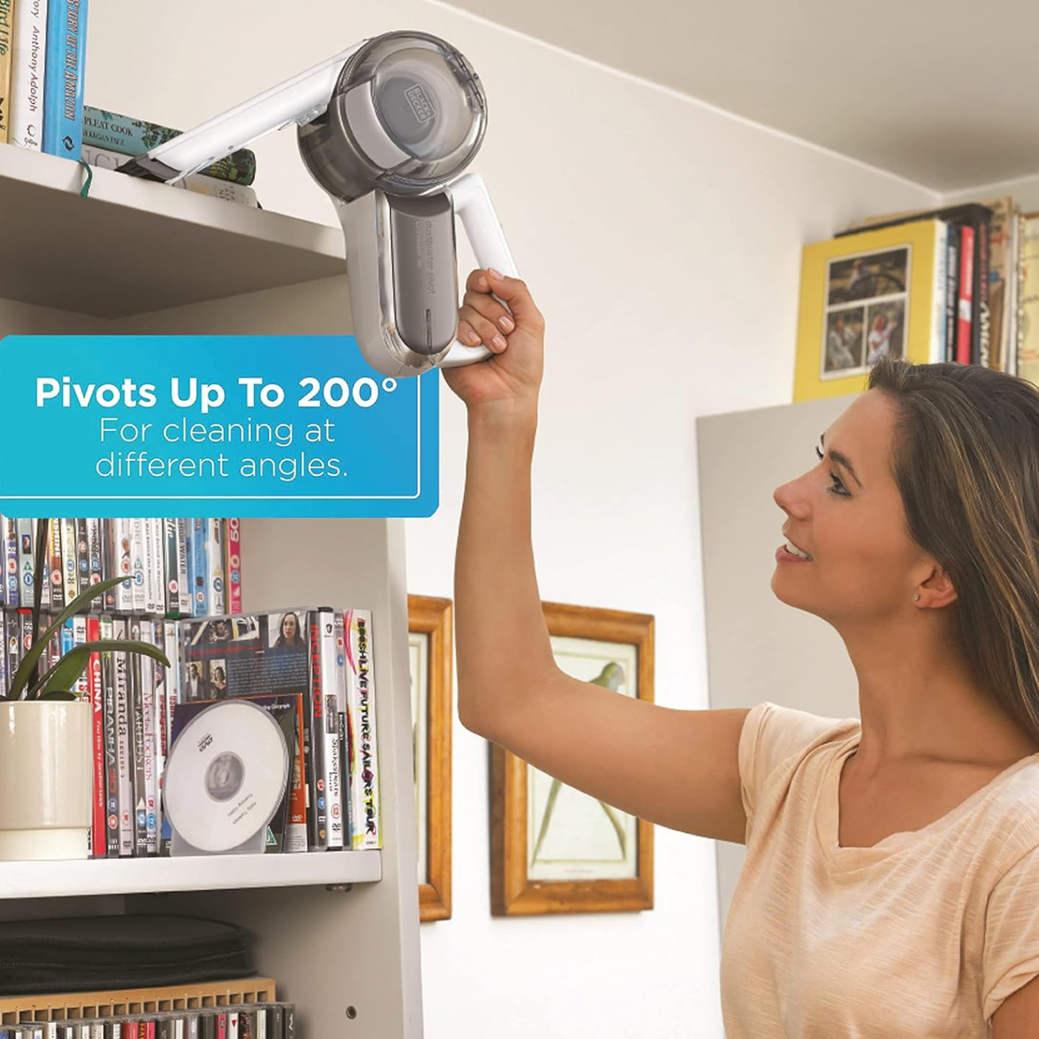 The BLACK+DECKER Cordless Handheld Portable Vacuum Cleaner (PV1420L-B5) is designed for effortless cleaning with powerful suction and a sleek, portable design. Featuring a 14.4V Li-Ion battery and 27.5 air watts of suction power, this handheld vacuum is ideal for both home and car cleaning. Its lightweight and compact design make it easy to handle, while the cordless convenience allows you to reach tight spaces without being restricted by a power cord. The Champagne/White color combination adds a touch of elegance to your cleaning tools, while the 1.5Ah Li-Ion battery ensures extended runtime for cleaning small messes or spot cleaning in both home and car interiors.