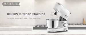 The BLACK & DECKER Stand Mixer Kitchen Machine (MKM100-B) is a powerful, versatile appliance designed to simplify your kitchen tasks. Equipped with a robust 1000W motor, it effortlessly handles a variety of mixing, whisking, and kneading tasks. Whether you’re preparing dough for bread, beating eggs for a cake, or mixing ingredients for batters, this stand mixer is built to make your baking and cooking experience easier and more efficient.