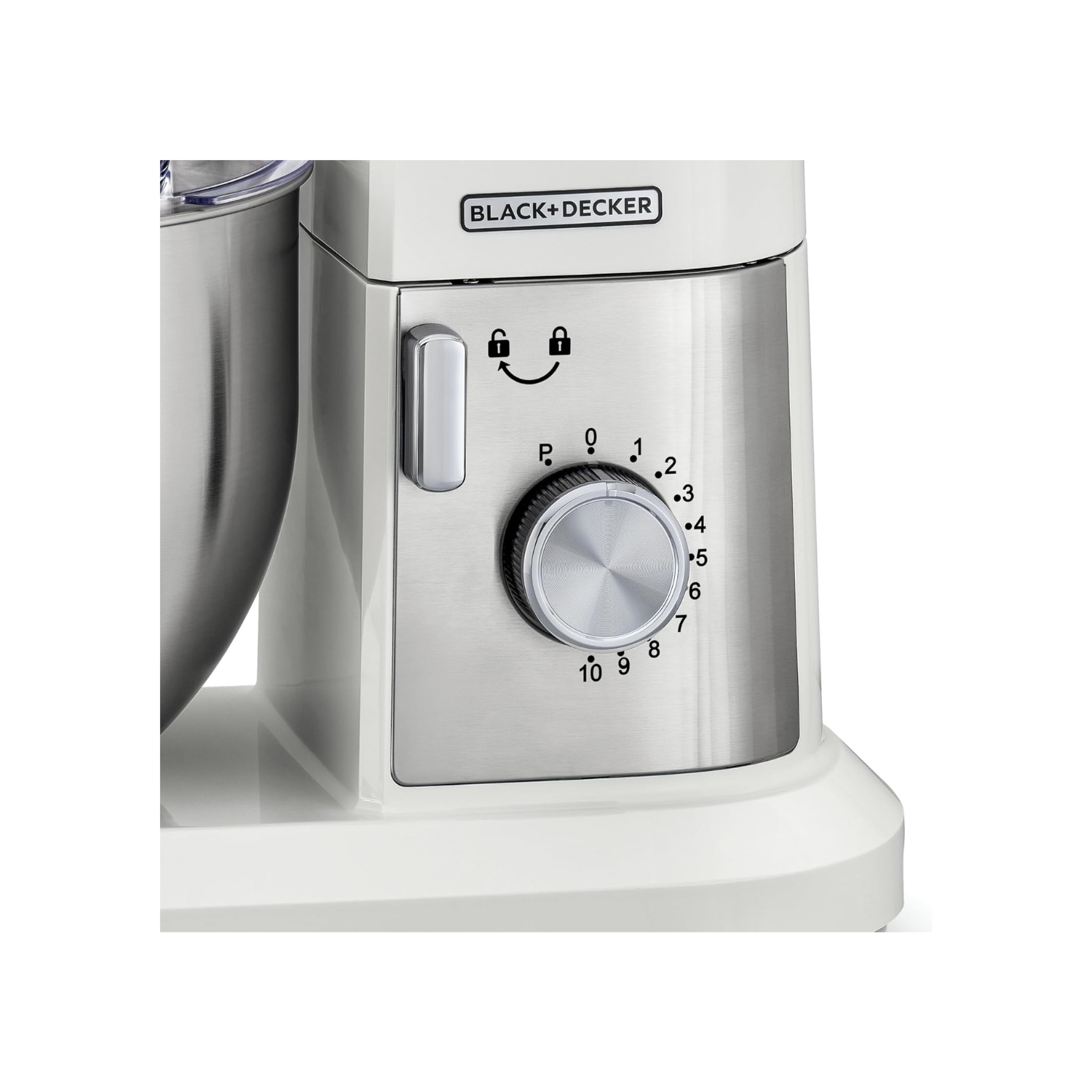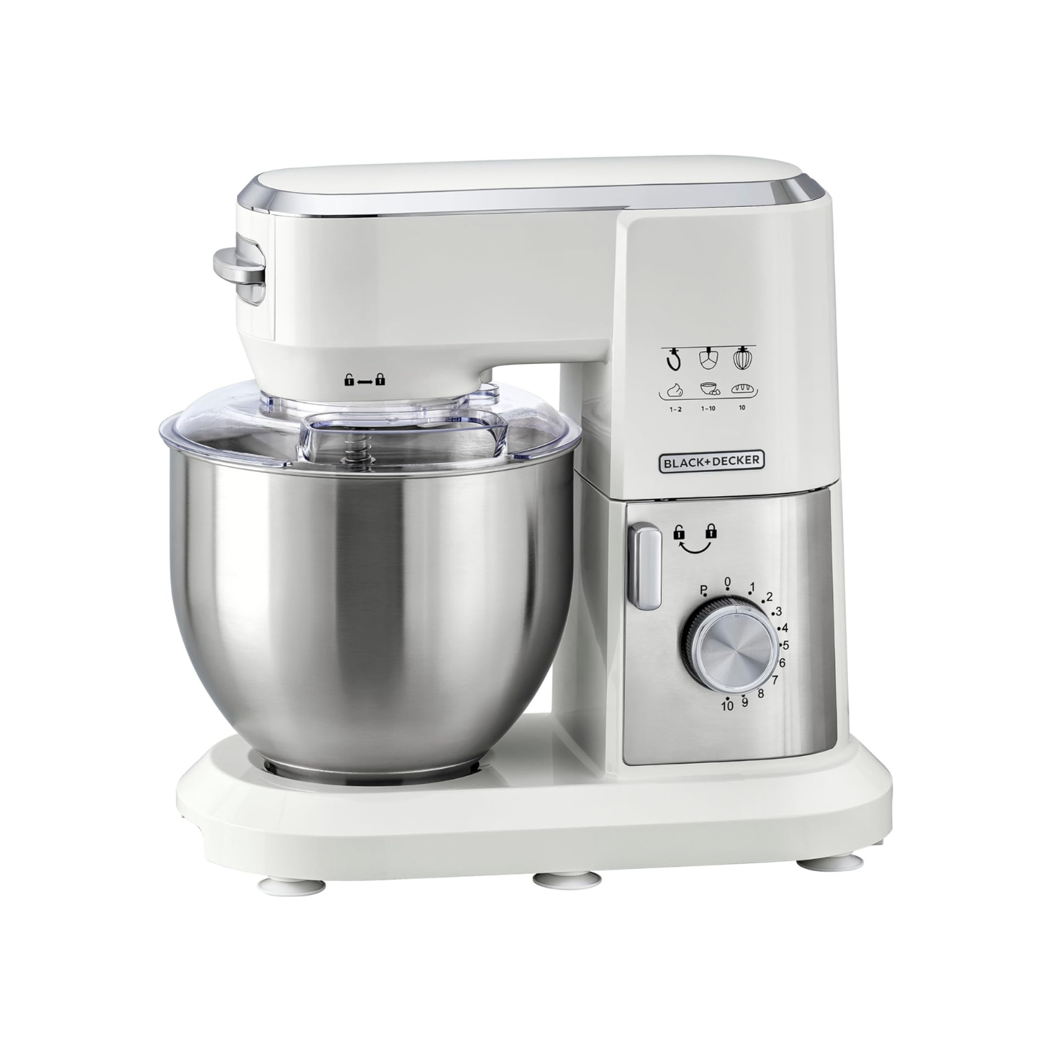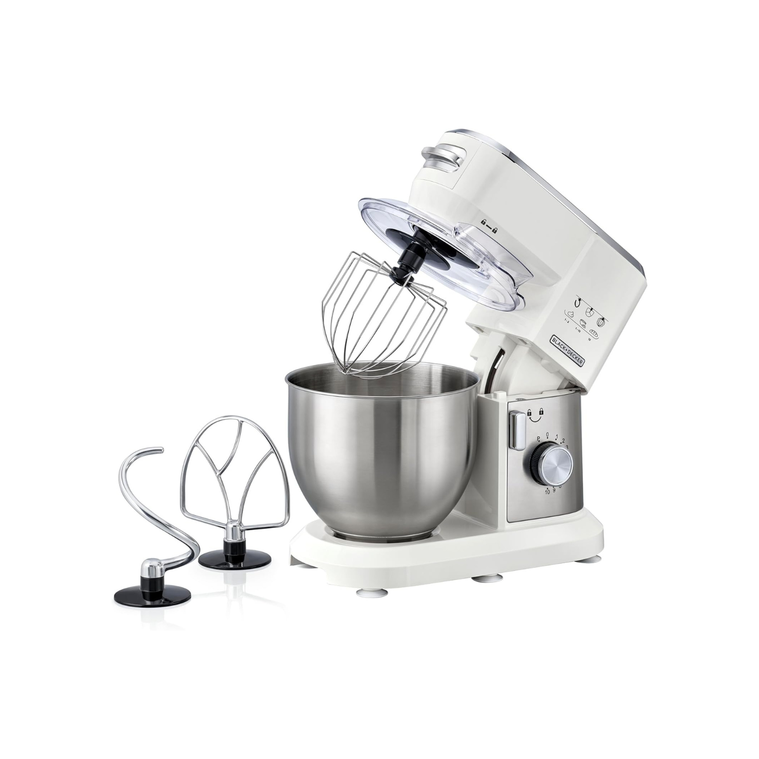 The BLACK & DECKER Stand Mixer Kitchen Machine (MKM100-B) is a powerful, versatile appliance designed to simplify your kitchen tasks. Equipped with a robust 1000W motor, it effortlessly handles a variety of mixing, whisking, and kneading tasks. Whether you’re preparing dough for bread, beating eggs for a cake, or mixing ingredients for batters, this stand mixer is built to make your baking and cooking experience easier and more efficient.