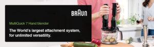 The Braun MultiQuick 7 Hand Blender MQ 7087X is the ultimate kitchen tool designed to deliver exceptional performance for all your blending, chopping, whisking, and pureeing needs. Powered by a 1000W motor, it offers high efficiency and versatility, while its innovative technologies ensure smooth and consistent results. The set includes a 600ml BPA-free beaker, 1.5L food processor, 350ml chopper, puree/masher, whisk, and more. Whether you’re preparing soups, smoothies, or finely chopping ingredients, this hand blender makes your cooking process quicker and easier.