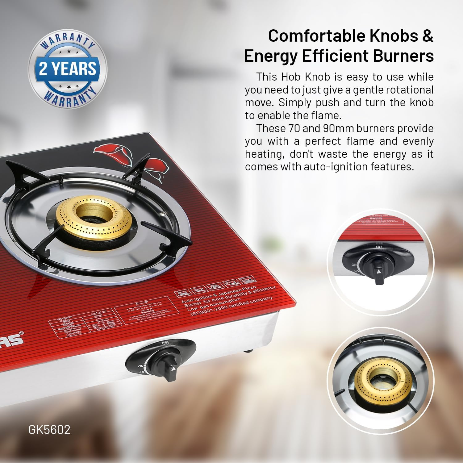 Cook with style and efficiency using the Geepas GK5602 2-Burner Glass Top Gas Stove. Designed for durability and high performance, this stove features a sleek glass top combined with sturdy materials, making it a perfect fit for modern kitchens.