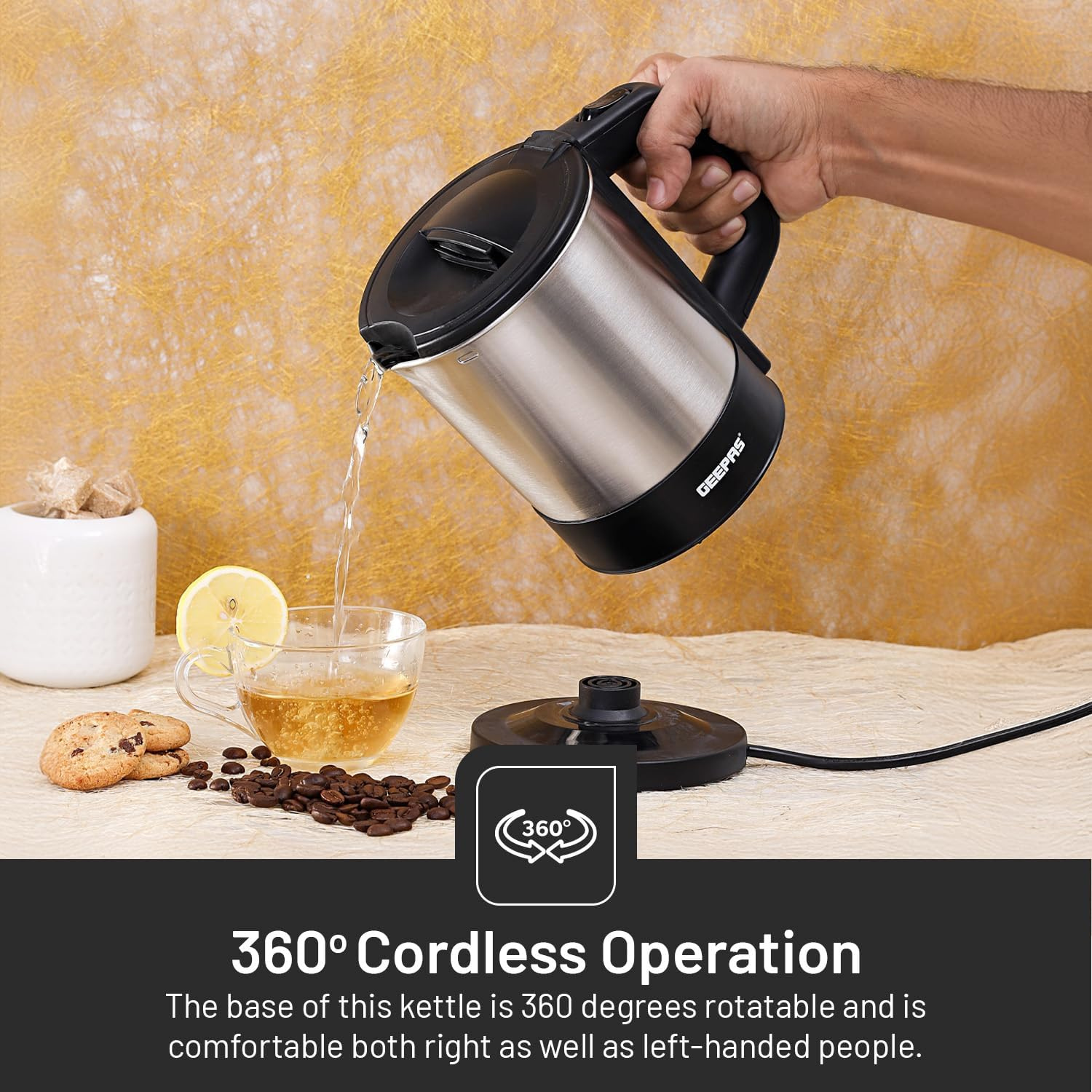 The Geepas GK5418 Travel Electric Kettle is the perfect combination of compactness, efficiency, and safety for those who are constantly on the move. With a 1.0L capacity and 1350W power, it boils water quickly for your tea, coffee, or other hot beverages. Its stainless steel housing ensures durability, while the boil-dry and overheat protection features provide added safety. Whether you’re in a hotel, office, or on vacation, this kettle ensures you have hot water in no time.