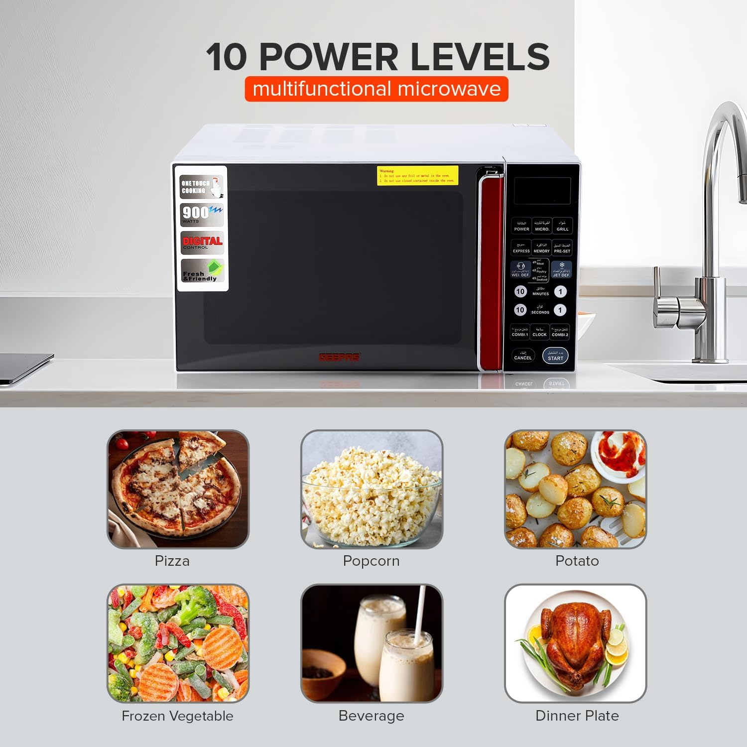 900W Power Output: With 900W of power, this microwave delivers fast and efficient cooking, reheating, and defrosting, ensuring your meals are ready in no time.