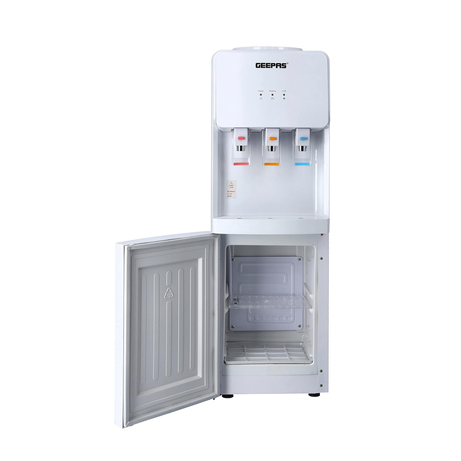 The Geepas GWD8355 Hot & Cold Water Dispenser combines efficiency, convenience, and style in a single appliance. Featuring stainless steel tanks, a compressor cooling system, and a child safety lock, this versatile 3-tap water dispenser is ideal for both home and office use. It has the flexibility of dispensing hot, cold, and ambient temperature water with a simple push of the tap, meeting a variety of hydration needs. Additionally, the cabinet feature allows for extra storage, making this dispenser even more practical for smaller spaces.