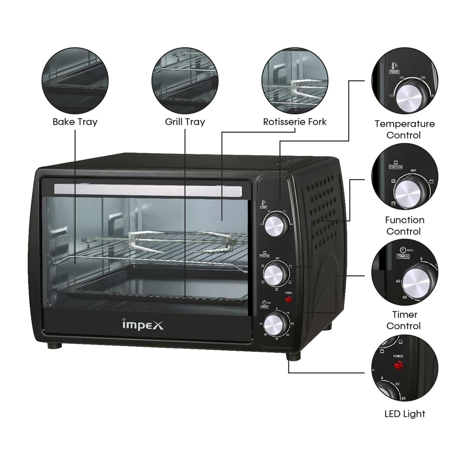Easy-to-Use Control Knobs: The intuitive control knobs allow you to easily adjust temperature, cooking function, and timer, making operation straightforward.