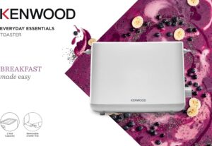 The KENWOOD 2-Slice Bread Toaster offers a blend of modern design, functionality, and versatility, making it the perfect addition to your kitchen. This white toaster is ideal for anyone who enjoys a quick, customizable breakfast or snack. With convenient features like adjustable browning control, a removable crumb tray, and an integrated bun warmer, it makes toasting a hassle-free experience.