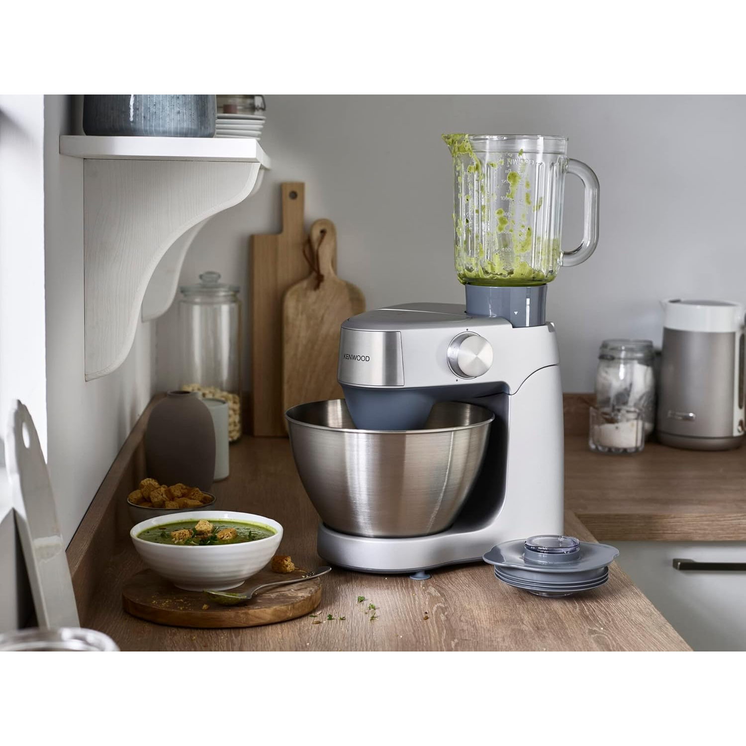 The Kenwood Stand Mixer PROSPERO+ 1000W KHC29.W0SI is a highly versatile kitchen machine designed to handle all your food prep needs. With a powerful 1000W motor, this kitchen assistant comes with a range of attachments, including a 4.3L stainless steel bowl, K-Beater, whisk, dough hook, glass blender, meat grinder, food processor, juicer, and multi mill. Its sleek silver design not only enhances the aesthetics of your kitchen but also provides top-notch functionality, making it perfect for both novice and experienced cooks.