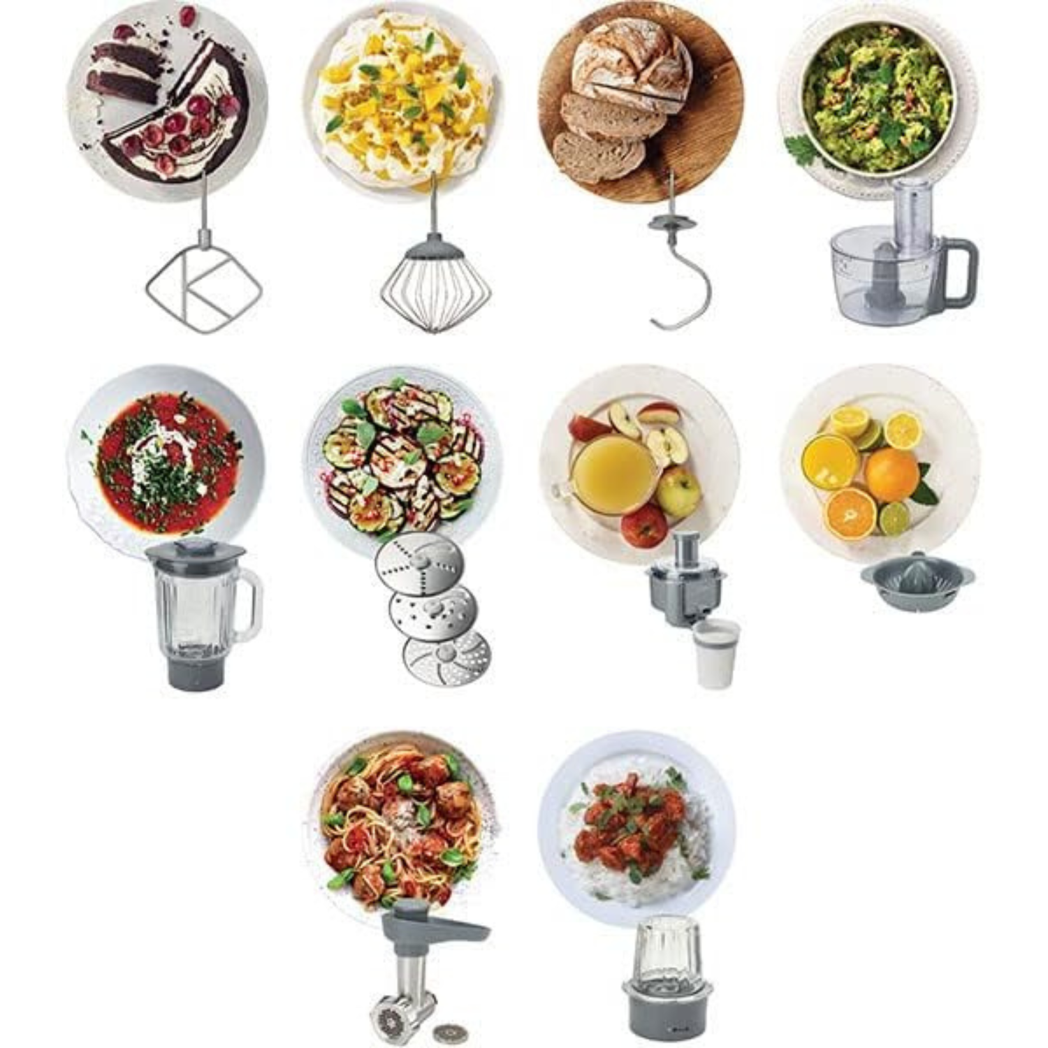 • K-Beater, Whisk, and Dough Hook Attachments: Ideal for mixing, whisking, and kneading with ease, perfect for a variety of recipes like cakes, bread, and pastries.