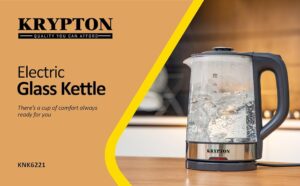 The Krypton 1500W Electric Glass Kettle combines sleek design with practical functionality for all your hot water needs. With a 1.7L capacity, this kettle is perfect for boiling enough water for tea, coffee, or other hot beverages. The high-powered 1500W system ensures fast boiling, and the glass body allows you to easily monitor the water level. Featuring an auto shut-off safety feature, the Krypton kettle is an ideal choice for any kitchen, offering both style and reliability.