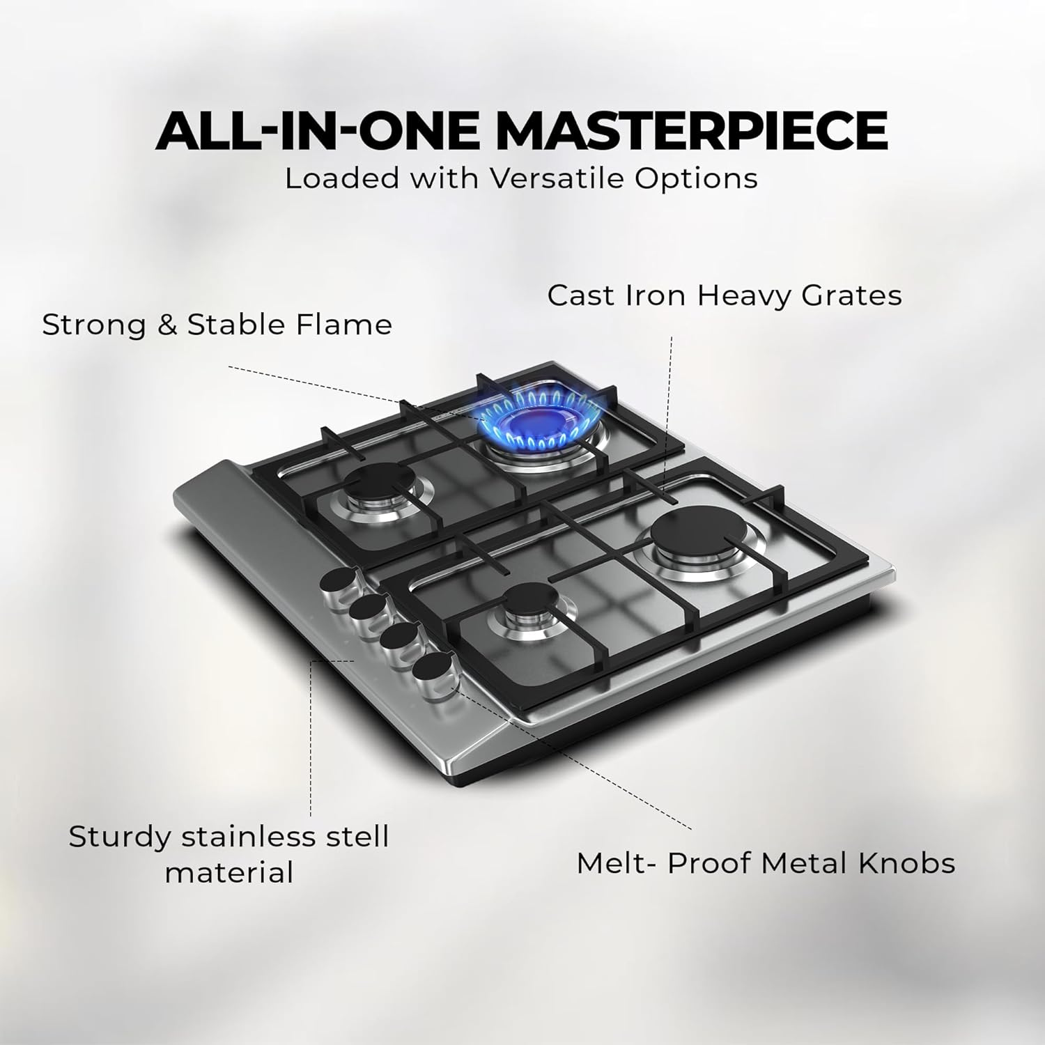 Full Safety Features – Flame failure safety device that cuts off gas flow if the flame goes out, ensuring a safe cooking environment.