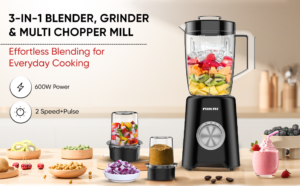 - Sleek and Space-Saving Design: With its compact design, the Nikai 3-in-1 Blender fits easily in most kitchens without taking up too much space. Its sleek and modern appearance ensures it complements any kitchen décor.