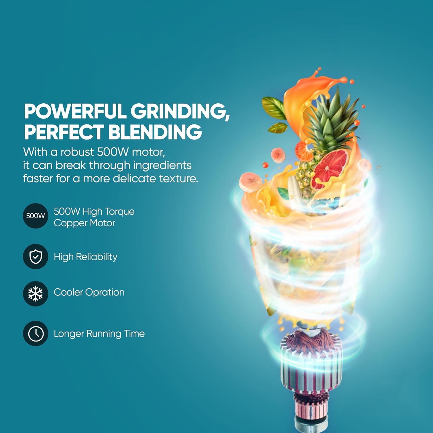 - 500W Power: Provides efficient performance for all types of blending, grinding, and juicing tasks. Ideal for both wet and dry ingredients.