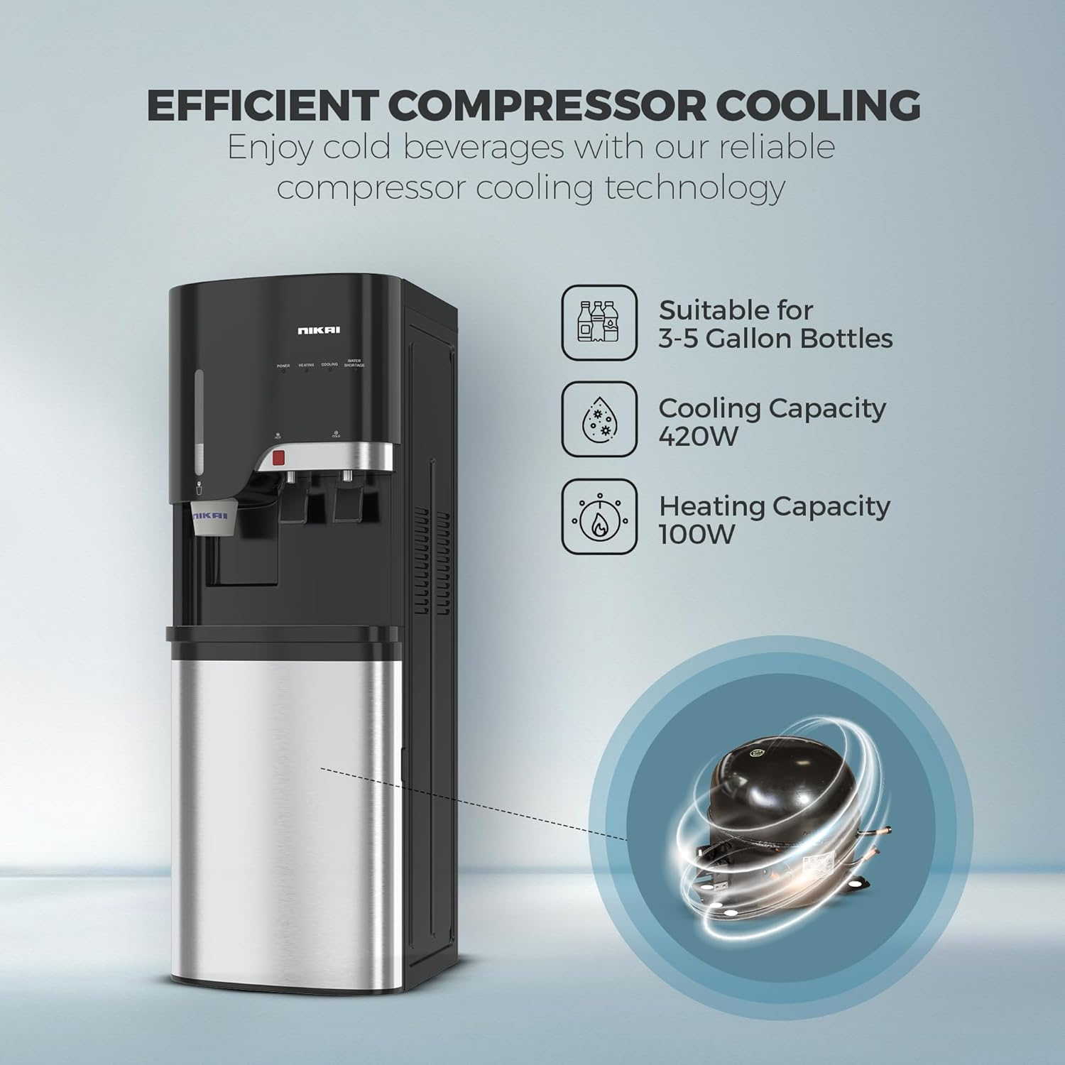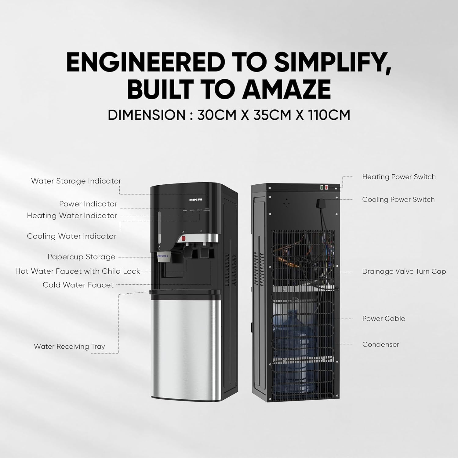 - Durable & Reliable: Built with high-quality materials, the Nikai Water Dispenser (NWD5000BSS) is built to withstand everyday use and provide consistent, reliable performance. Low Maintenance: Easy to clean and maintain, ensuring trouble-free operation over time.