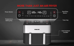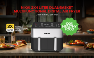 The Nikai 8 Liter Dual-Basket Multifunctional Airfryer (NAF282DX) in sleek Black is designed to make cooking easier, faster, and more convenient. With its dual-basket system, this air fryer allows you to cook two different dishes at the same time, each with independent temperature settings, offering ultimate flexibility for multi-tasking in the kitchen. Whether you’re frying, baking, grilling, or roasting, this versatile appliance delivers excellent results every time.