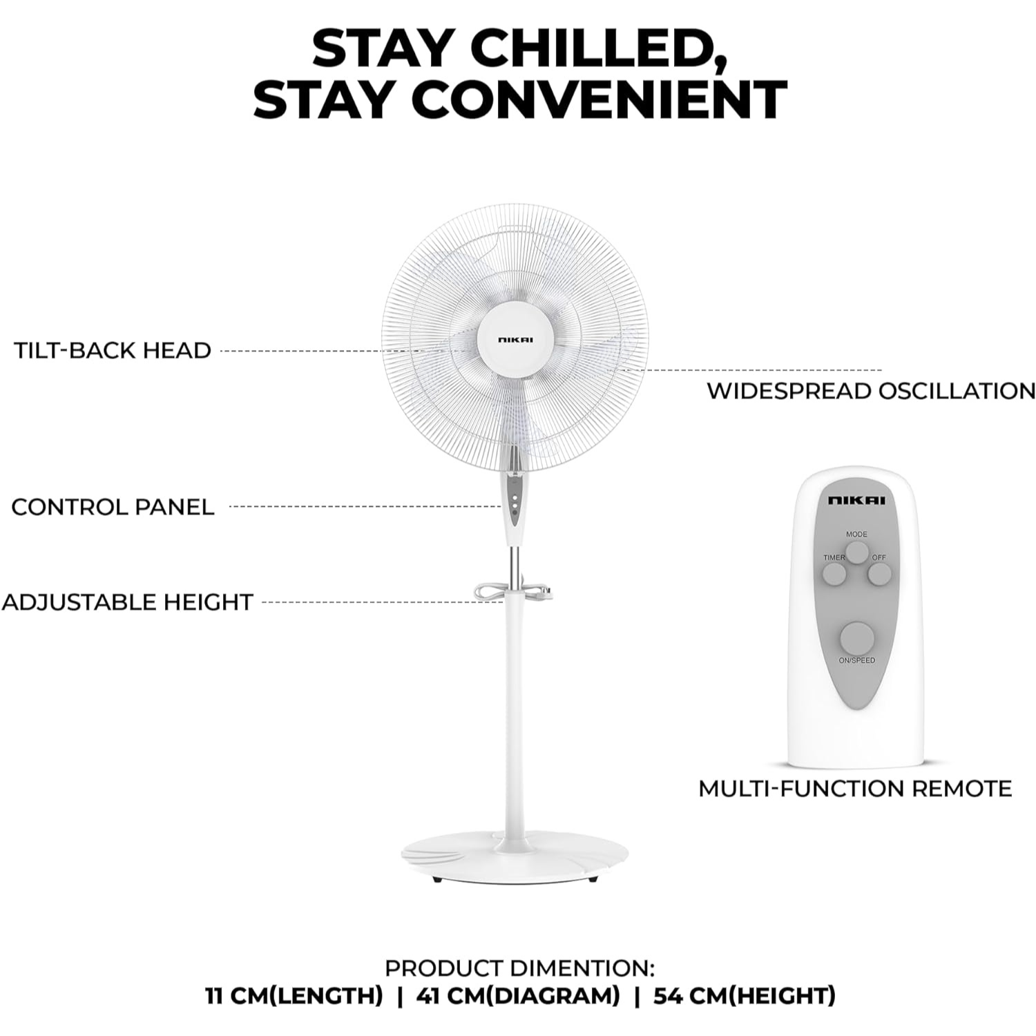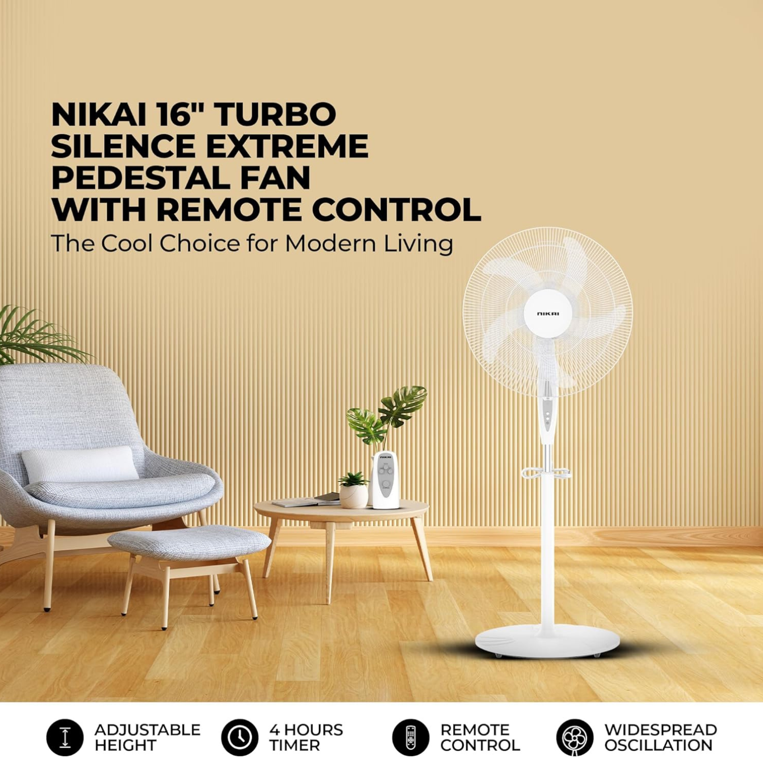 The Nikai 16 Inch Pedestal Fan NPF1634RT offers a powerful and efficient cooling solution for your home or office. Featuring a 45-watt high-performance copper motor, this fan is designed for long-lasting durability and energy efficiency. With 3 speed settings, it lets you choose the perfect airflow level for your space. The fan’s wide oscillation ensures that cool air is evenly distributed throughout the room, creating a comfortable environment.