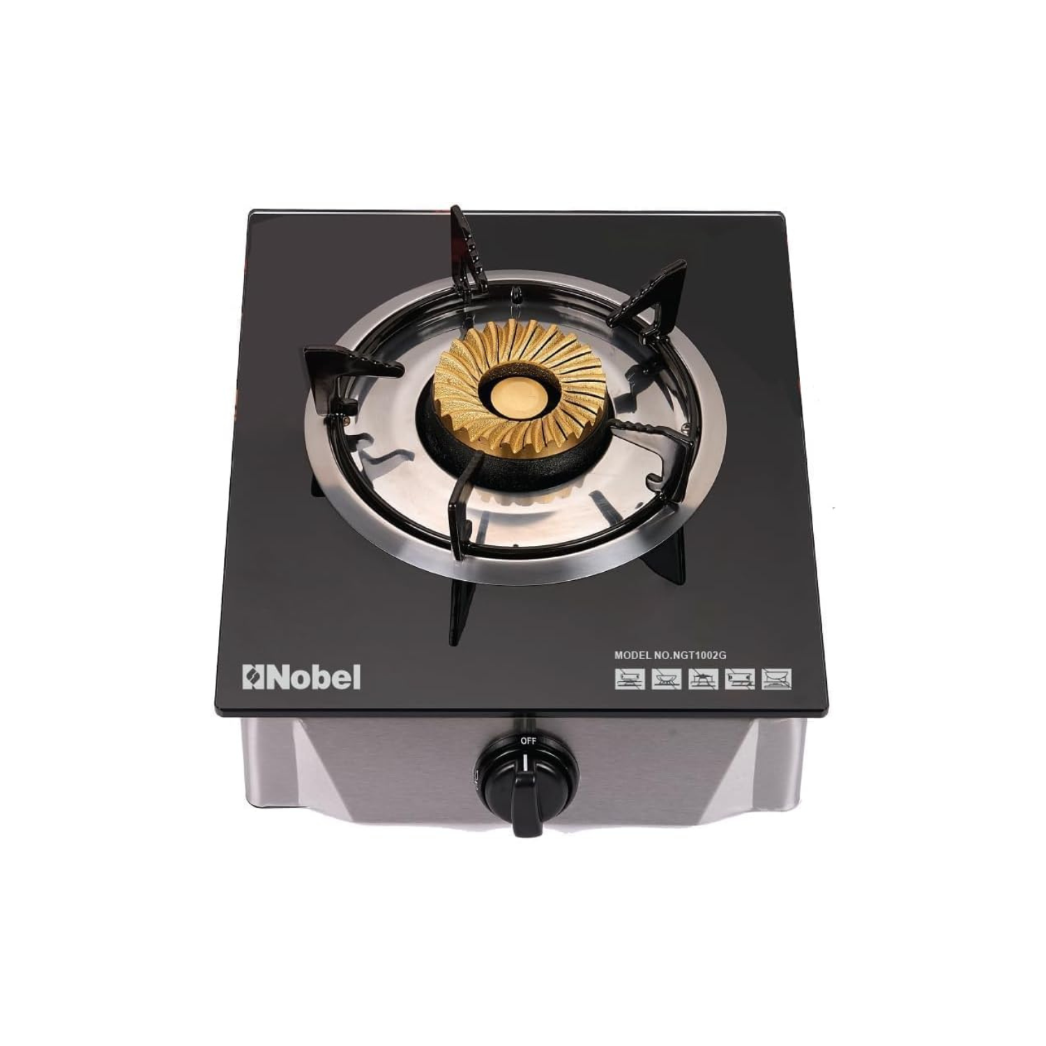 The Nobel Single Stove Gas Burner Glass Top (NGT1002G) is the perfect cooking solution for small spaces, offering reliable and efficient performance. The heavy cast iron burner ensures even heat distribution, while the sleek glass top adds a modern touch to your kitchen. Whether you’re cooking small meals or need an extra burner for large gatherings, this stove provides both style and functionality.