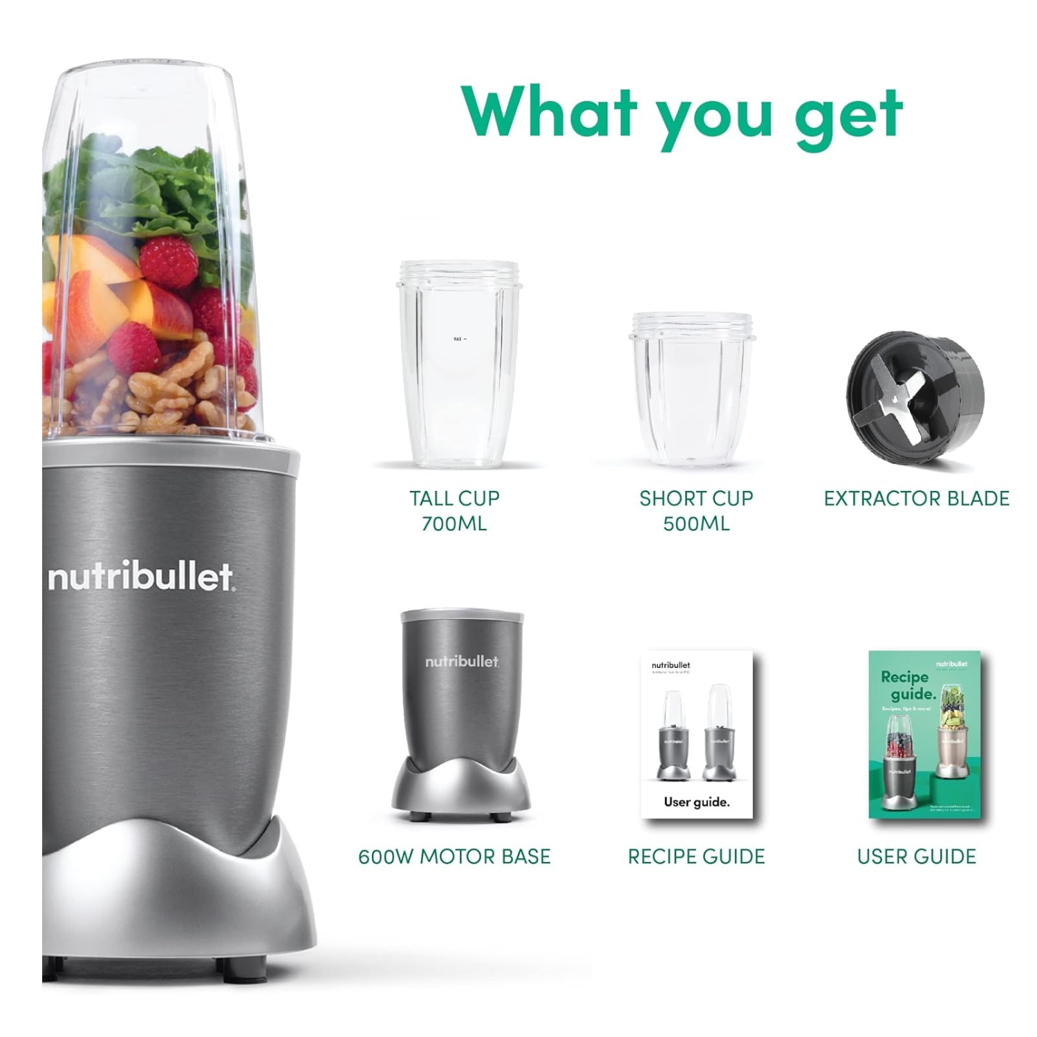 - Compact Design for Small Kitchens: The compact design makes the NutriBullet NBR-0612 easy to store, fitting neatly in smaller kitchen spaces. Its sleek grey finish ensures that it complements any kitchen decor without taking up too much space on your countertop.