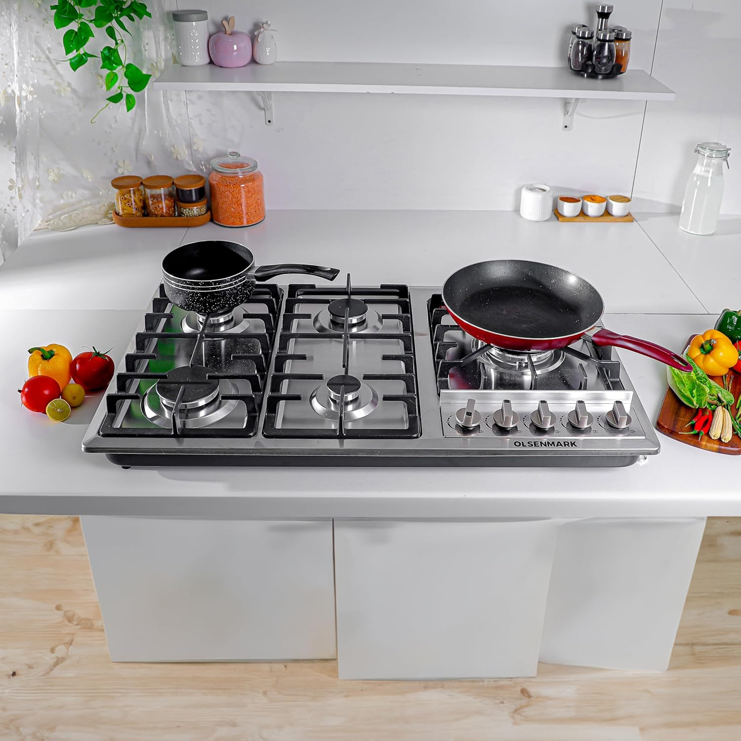 Space-Saving Design: Despite its five burners, this hob is designed to fit seamlessly into your kitchen, offering ample cooking space without taking up too much room.