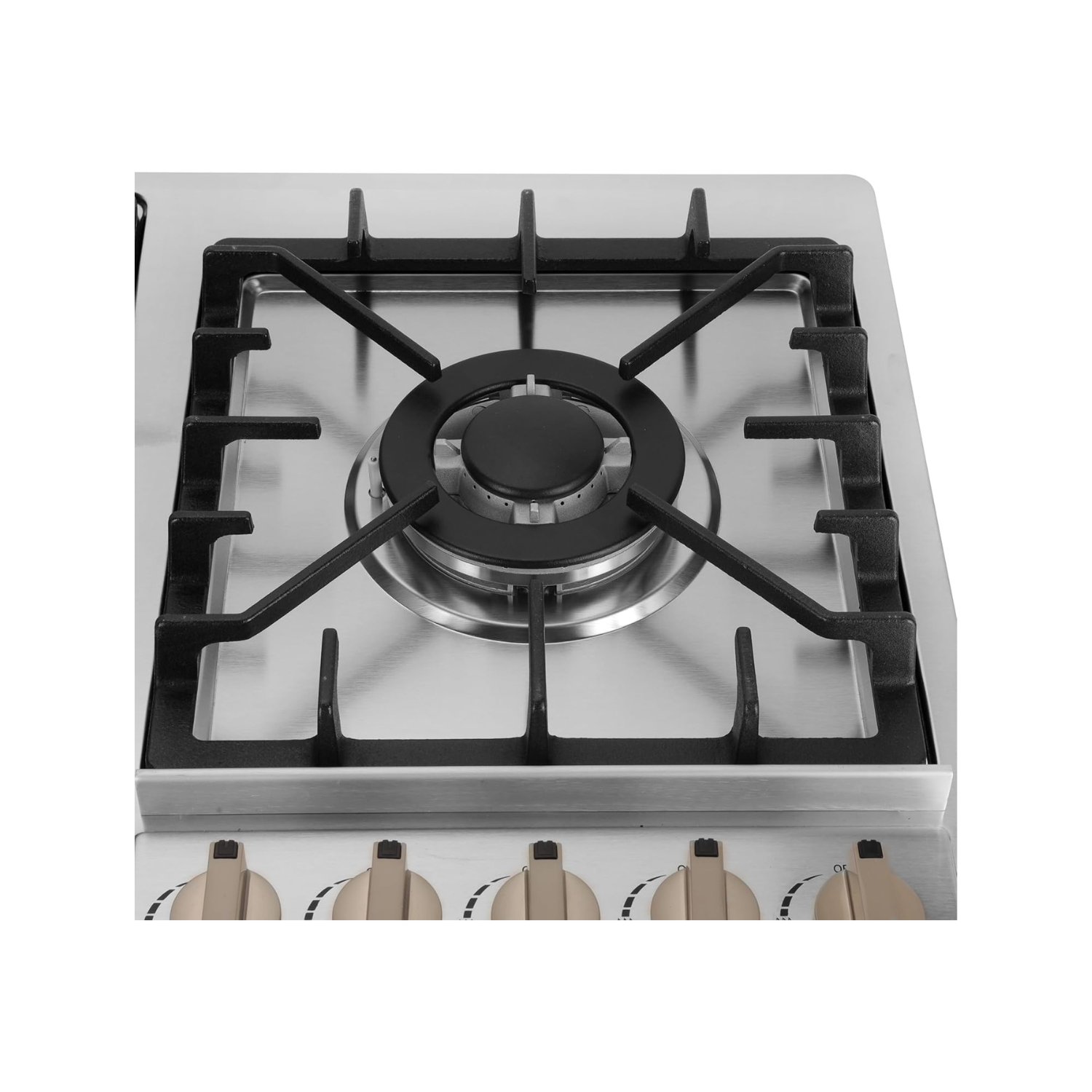 5 Burners for Versatility: Includes Triple Ring, Rapid, Semi-Rapid, and Auxiliary burners to cater to all your cooking needs. Whether you’re cooking a large meal or simmering a small pot, this gas hob ensures you have the right burner for the job.