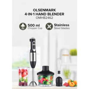 The Olsenmark 4-in-1 Hand Blender (OMHB2462) is designed to provide versatility and power in your kitchen. Featuring a 700W copper motor, this hand blender offers outstanding performance, making it ideal for blending, chopping, pureeing, and mixing a variety of ingredients. With 2 speed modes, you can easily adjust the power for different tasks, from making smoothies to preparing soups or sauces. The 4-in-1 functionality includes a blender, chopper, whisk, and beater, allowing you to tackle multiple kitchen tasks with a single appliance. The durable copper motor ensures longevity and consistent results, while the multi-color design adds a stylish touch to your kitchen. Whether you’re cooking for one or preparing meals for the whole family, this hand blender is the perfect tool for a wide range of food prep needs.