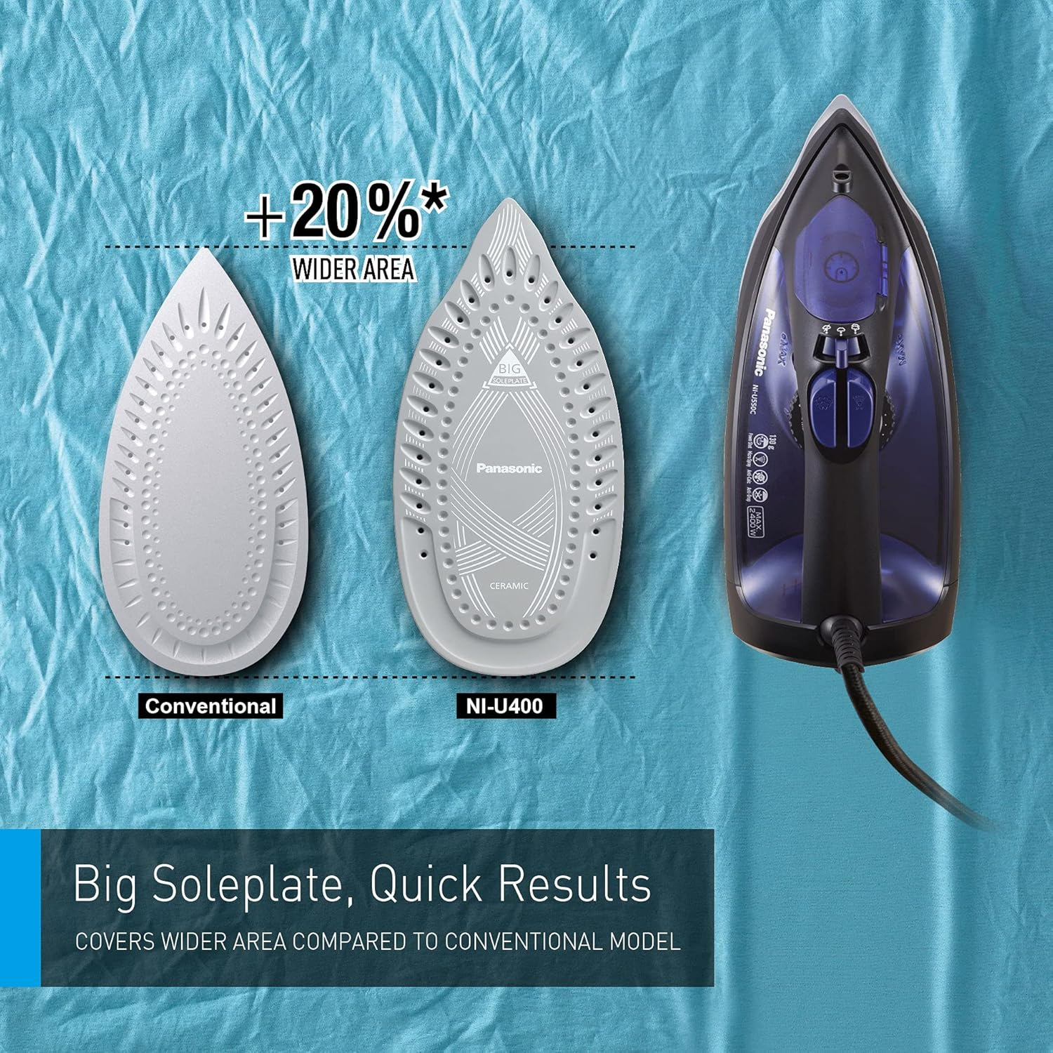 - Big Ceramic Soleplate: Smooth ceramic-coated soleplate ensures even heat distribution for superior glide, reducing ironing time. Durable and scratch-resistant, it provides a gentle touch on all fabric types.