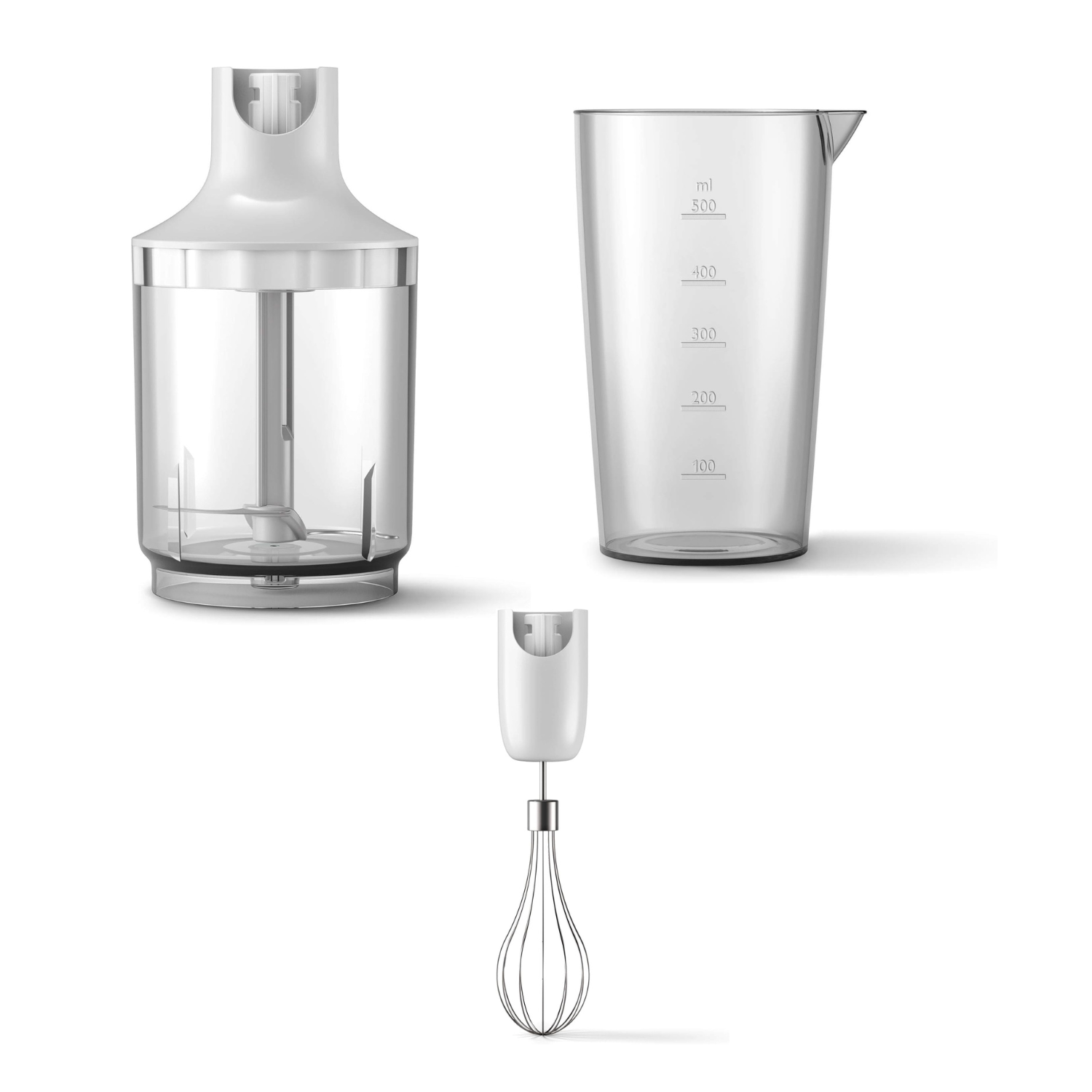 - Includes Beaker, XL Chopper, and Whisk: Beaker: Comes with a 600ml plastic beaker, perfect for blending smaller portions of smoothies, soups, or shakes. XL Chopper: The included XL chopper (1000ml) is ideal for chopping vegetables, fruits, nuts, or herbs, allowing you to create a variety of dishes with ease. Whisk: The whisk attachment is great for whipping cream, beating eggs, or preparing fluffy batters for pancakes, cakes, and more.