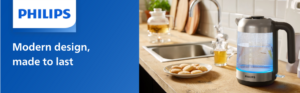 The Philips Glass Kettle Series 5000 (HD9339/81) offers a perfect combination of style, performance, and advanced features. With a 1.7L capacity and 2200W power, this kettle ensures quick boiling for all your hot water needs. The elegant glass body, paired with a sleek metal base, features a blue light indicator for a visually appealing boiling process. The removable lid allows for easy cleaning, and the kettle’s cordless design ensures effortless pouring from any angle. Designed for efficiency, safety, and style, this kettle is ideal for homes and offices alike.