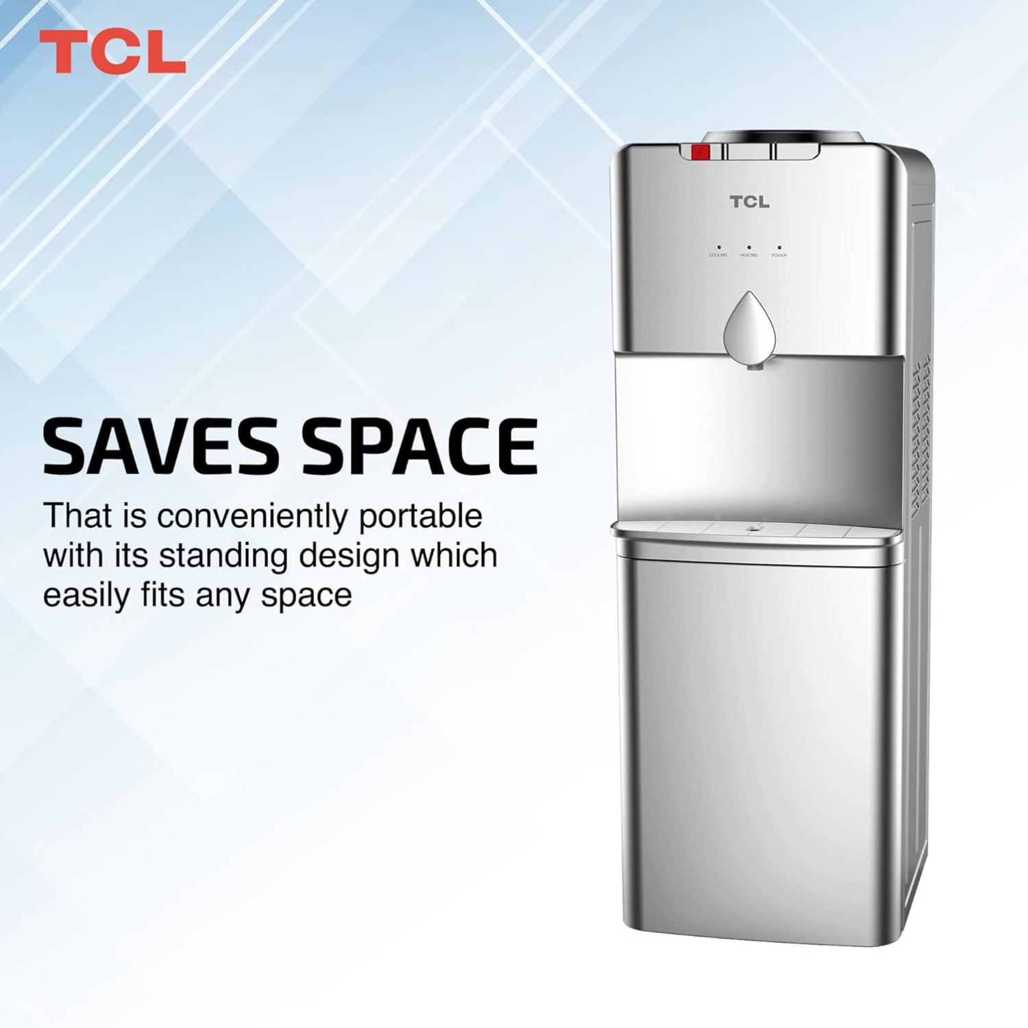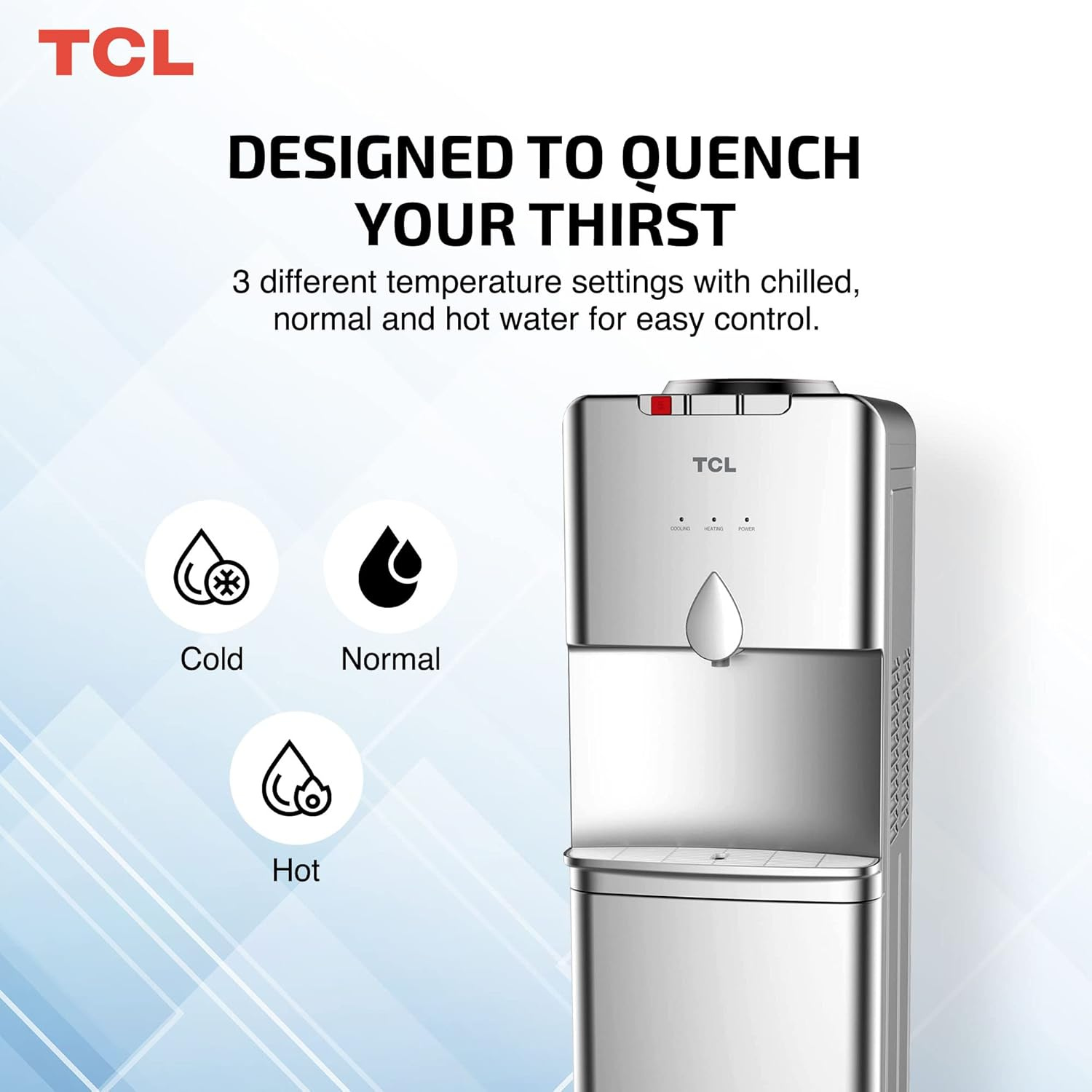 Stay refreshed and hydrated with the TCL Water Dispenser TY-LWYR19S, designed to provide convenient access to hot, cold, and normal-temperature water in a sleek and space-saving design. Whether you’re at home, in the kitchen, or in the office pantry, this top-loading water dispenser is a versatile and reliable solution for your hydration needs.